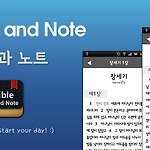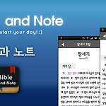 안드로이드 무료 한글 성경 어플인 "성경과 노트"가 1.1.0 버전으로 업데이트되었습니다. 이번 버전에서는 몇가지 중요한 설정이 변경되어, 기존 환경 설정이 초기 세팅으로 변경됩니다. 이점 양해 부탁드립니다. ㅠㅠ 주요 변경 사항은 아래와 같습니다. [1.1.0 버전 개선사항] 노트 기능 추가 드디어 노트기능이 추가되었습니다. 심플하게 그날 묵상한 내용을 남기는 것이 목적이기 때문에 단순하고 깔끔한 레이아웃을 추구했습니다. 위의 이미지와 같은 레이아웃을 가집니다. 프로요 기반 안드로이드 개발환경의 버그탓에 ICS 에서는 위 화면의 버튼 부분이 깔끔하게 표시되지 않을 수 있습니다. 구절 터치 시 복사되는 기능 추가 한 구절을 터치하면 해당 절이 클립보드에 복사되는 기능을 추가했습니다. 환경 설정 진입시 종..